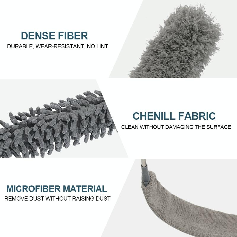 -4-piece set: telescopic pole + chenille brush + microfiber brush + crevice brush