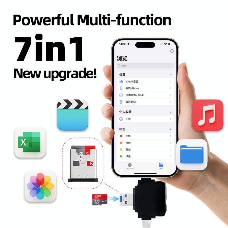 1. Powerful multi-functional 7 in 1: TF memory card can be directly inserted in the USB interface can be used as a U disk, no need to be repeatedly inserted and not affected by other card slots, support multiple interfaces to read at the same time.