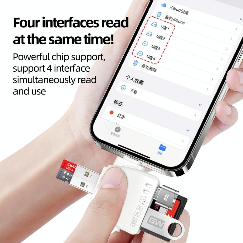 3. As The Name Suggests, Small And Powerful: 4 interface read at the same time, USB interface to connect to the computer TF memory card.SD camera card,USB flash drive, Type-C flash drive read and use at the same time, faster efficiency.