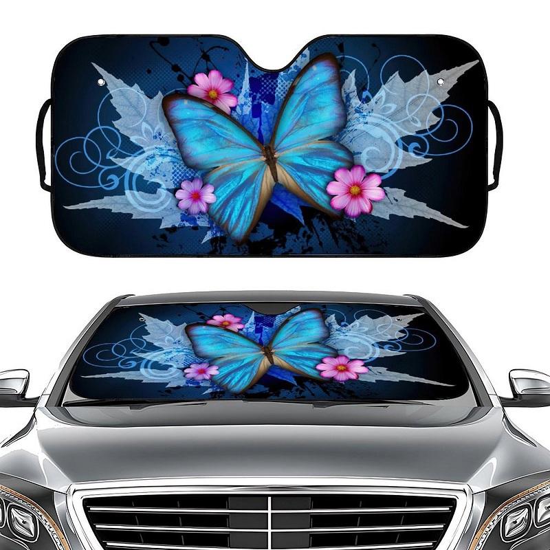 70x145cm Printed Car Sun Protection Heat Insulation Sunshade(Blue Butterfly)