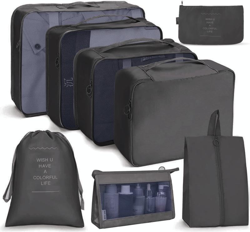 8 In 1 Cosmetic Bag Travel Storage Bag Set Folding Storage Bag( Black)