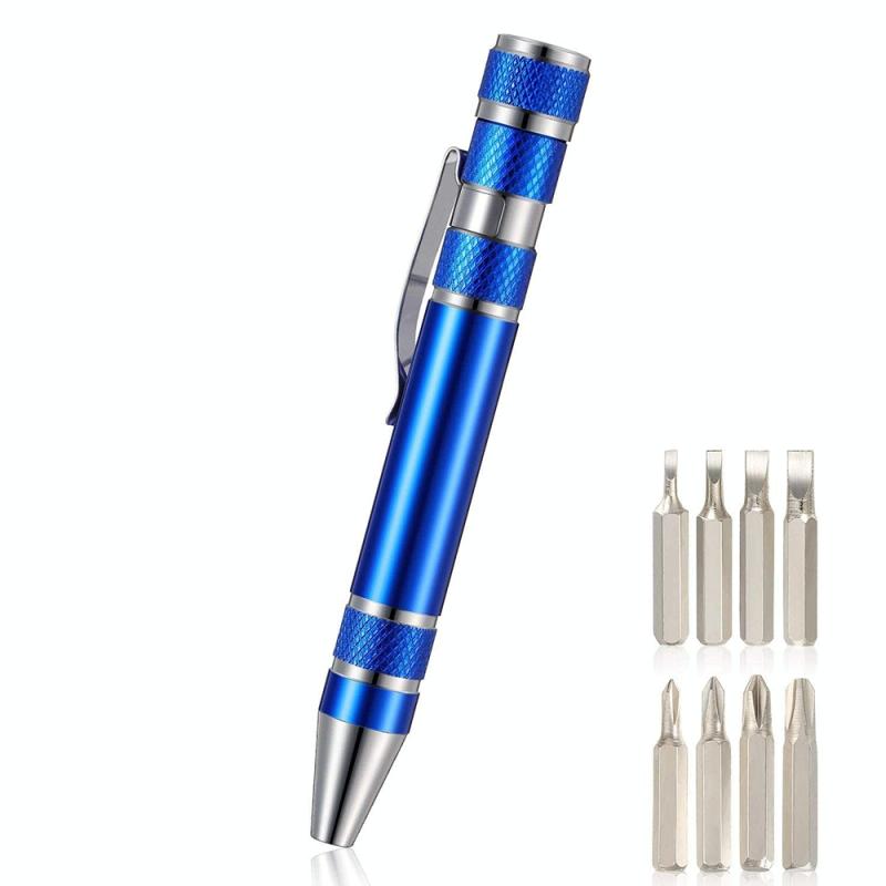 8 In 1 Multifunctional Mini Aluminum Tool Pen Screwdriver Set(Blue)