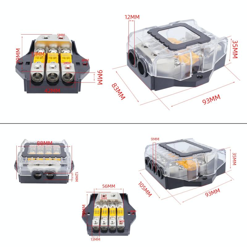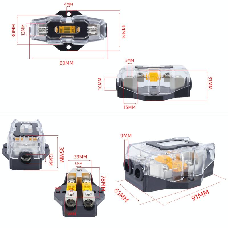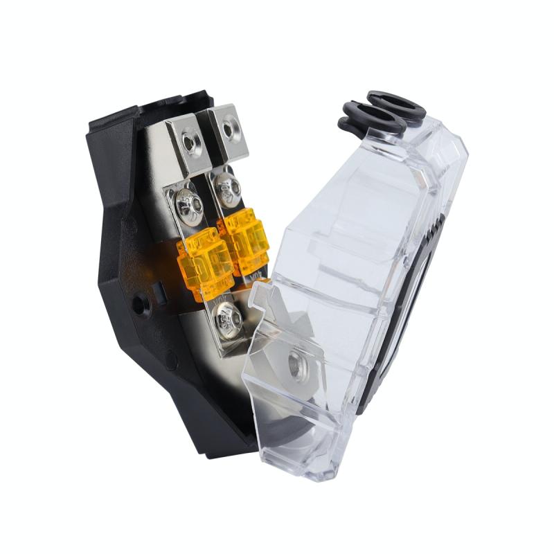 80A Car Audio Amplifier Modified Solid Brass Fuse Holder With Transparent Cover, Specifications: 2-way