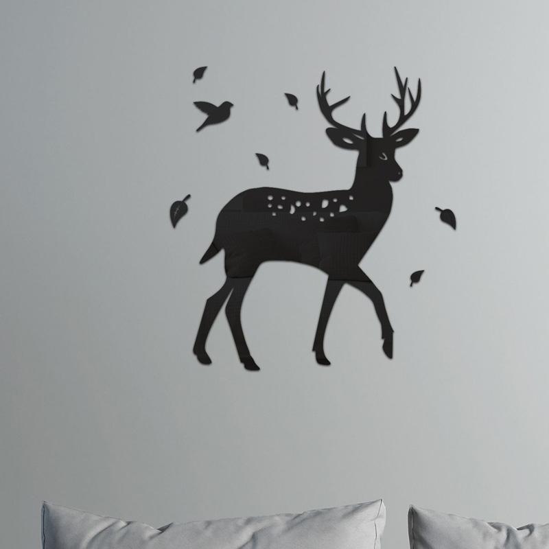 8pcs /Set Acrylic Deer Mirror Wall Stickers Home Background Decoration(Black)