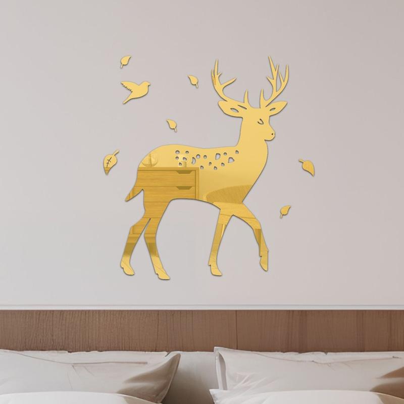 8pcs /Set Acrylic Deer Mirror Wall Stickers Home Background Decoration(Gold)