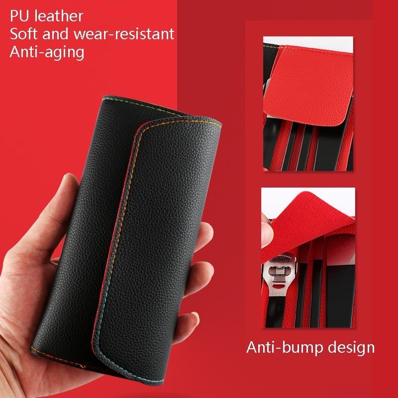 6. Features: PU leather outer packaging, beautiful and exquisite, soft, wear-resistant, aging-resistant, anti-bump design, tool stainless steel material, wear-resistant and durable