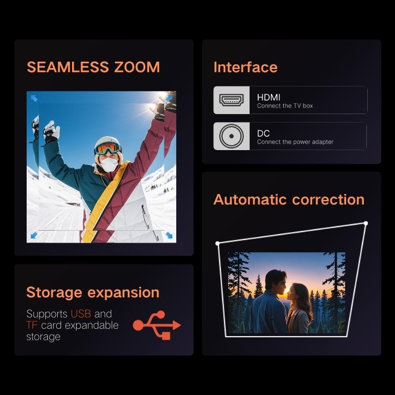 16. Input interface: USB x 2, HDMI x 1, 3.5mm audio x 1, DC-in x1
