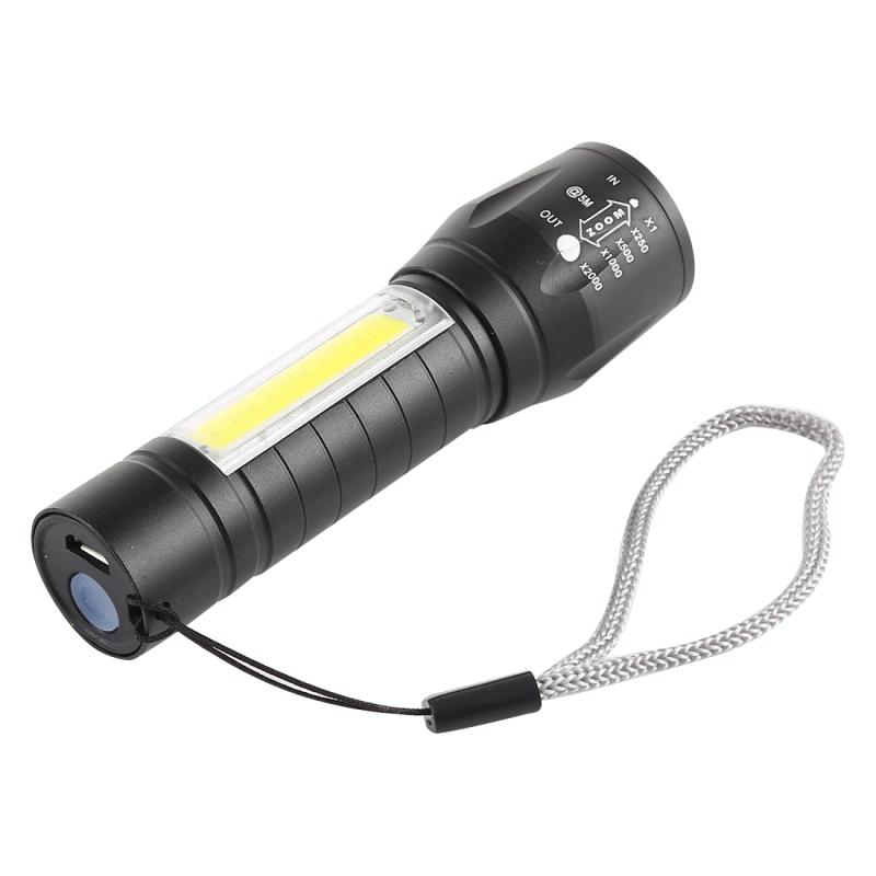 3. 3 modes: zoomable XPE light / strong COB / strobe COB