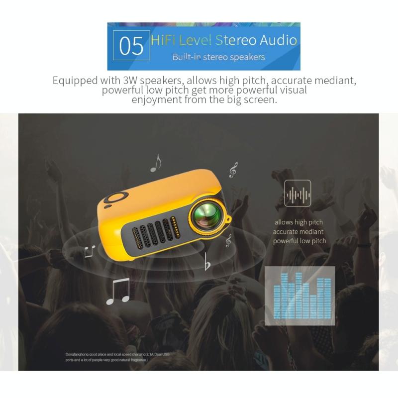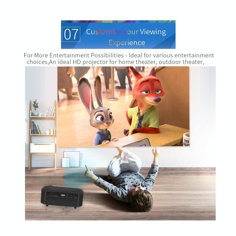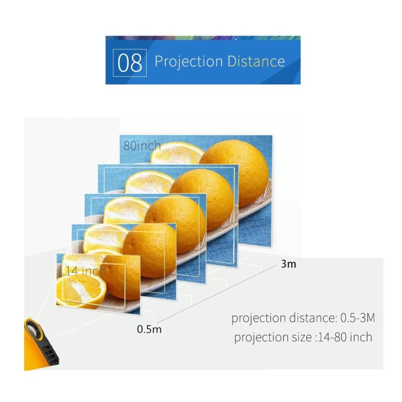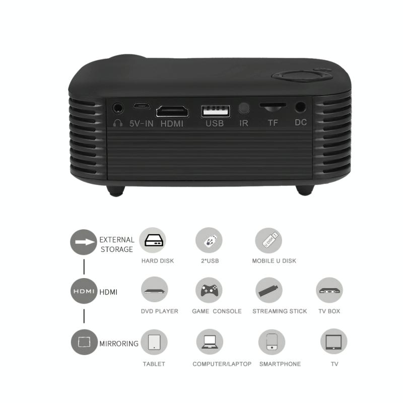 1. Portable and Lightweight: The mini projector is lightweight and compact in size. Smaller than phone, it can be put at any place. You can also take it out for a trip.
