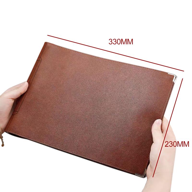 A4 Faux Leather Loose-leaf Grid Notebook, Style:Cornell Checkered Core(Brown)