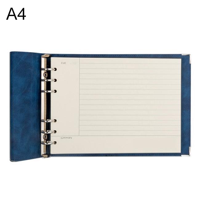 A4 Faux Leather Loose-leaf Grid Notebook, Style:Cornell Horizontal Wire Inner Core(Blue)