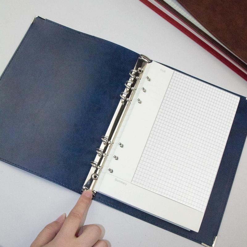 A5 Faux Leather Loose-leaf Grid Notebook, Style:Cornell Checkered Core(Blue)