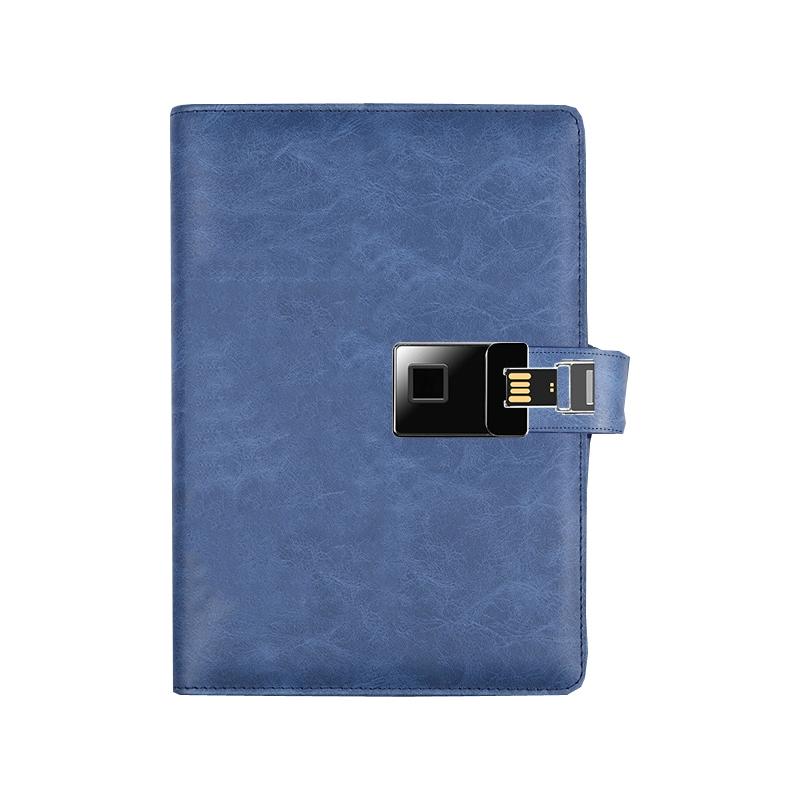 A5 Multi-Function Fingerprint Unlocking Notebook Can Record 10 Fingerprints, Specification: Fingerprint Lock + 16G U Disk(Crazy Horse Pattern Blue)