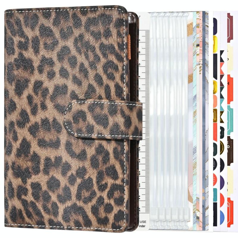 A6 Leopard Print Cash Budget Notebook Loose Leaf Financial Management Notepad(Deep Brown)