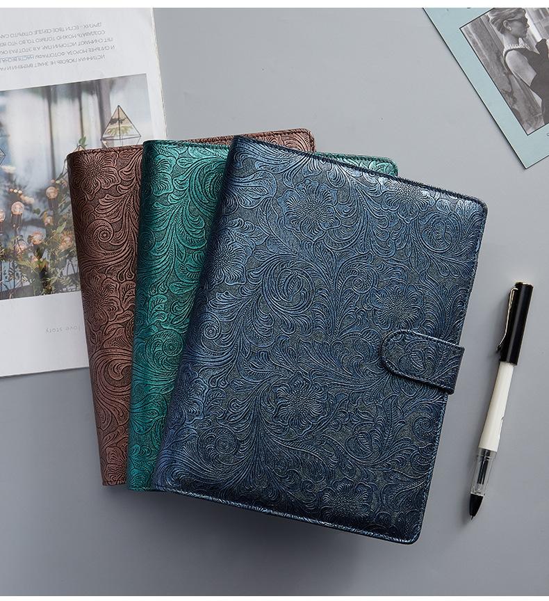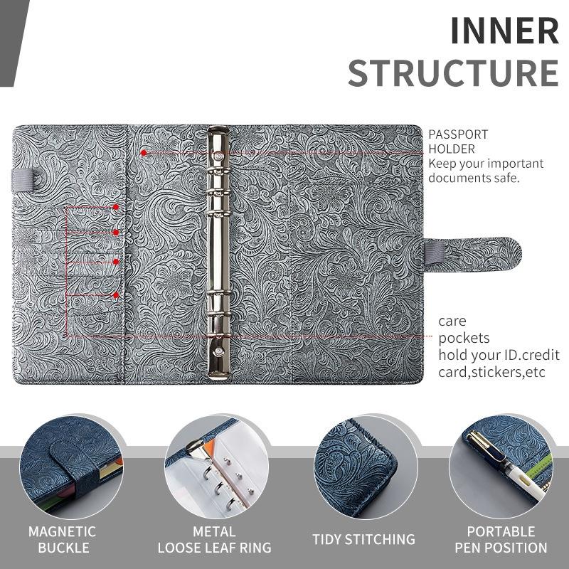 A6 YMX-007 PU Leather Budget Binder Notebook Embossed Model Handbook(Dark Green)