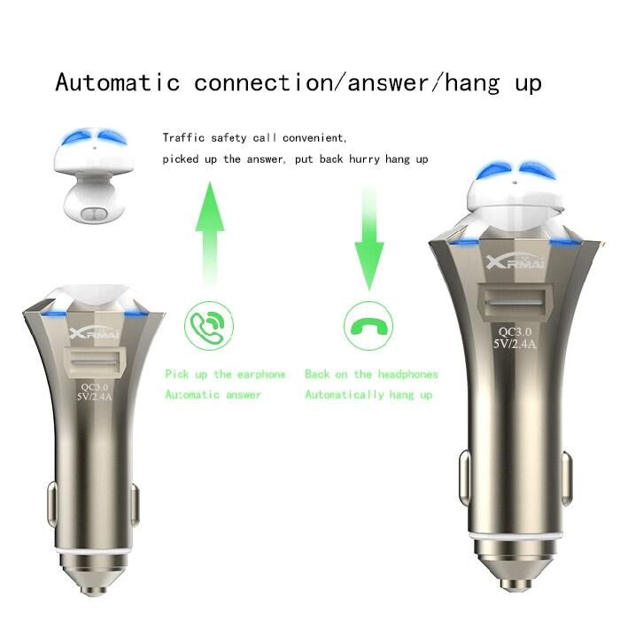 1. 3 in 1 diversified use: Bluetooth earphone & Safety Hammer & Car USB Quick Charger.