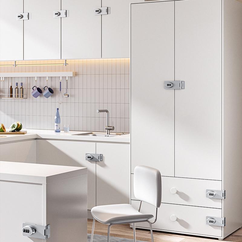 1. Applicable to Various Furniture: This safety lock is designed for cabinets, drawers, wardrobes, bookshelves, and similar furniture. It features a combination lock design and supports both drill/no-drill installation, effectively preventing babies from accessing dangerous items.