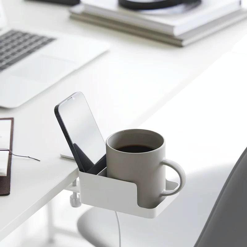 Adjustable Clamp-On Desktop Cup Holder Organizer For Phone, Remote, Plants, Water Bottle(Black)