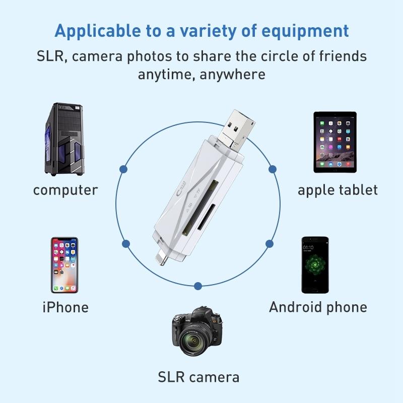 ADS-208 8 Pin+USB+Micro USB Multi-function Card Reader (Silver)