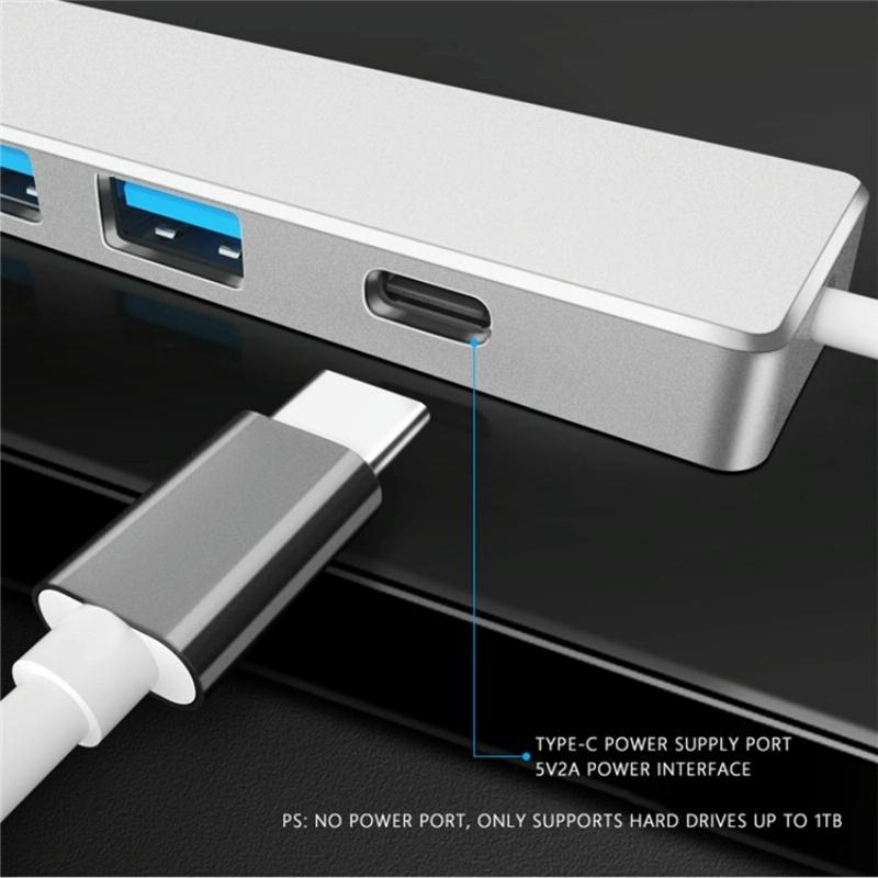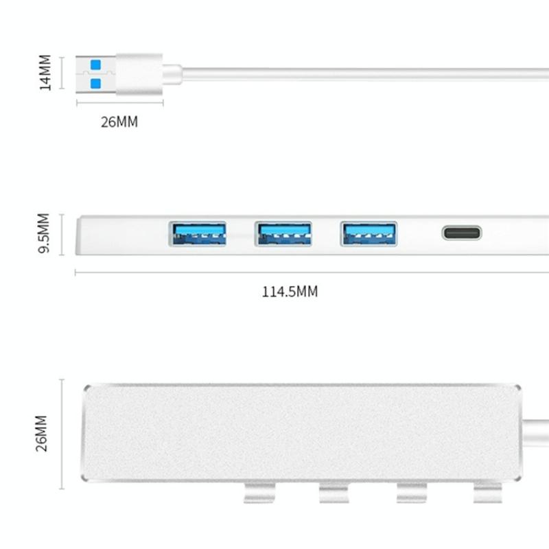 1. This is a USB hub converting to 1 x Type-C female + USB 3.0 + 3 x USB 2.0 ports, solving the problem of insufficient USB interfaces on laptops or computers