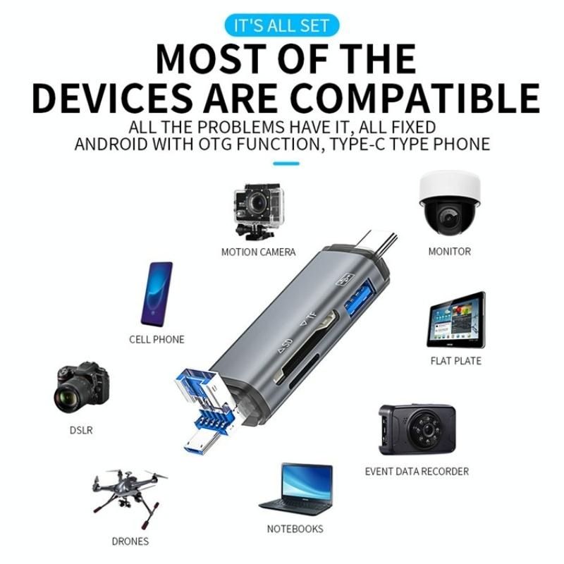 3.Micro/Type-C/USB plug card reader, suitable for a variety of devices