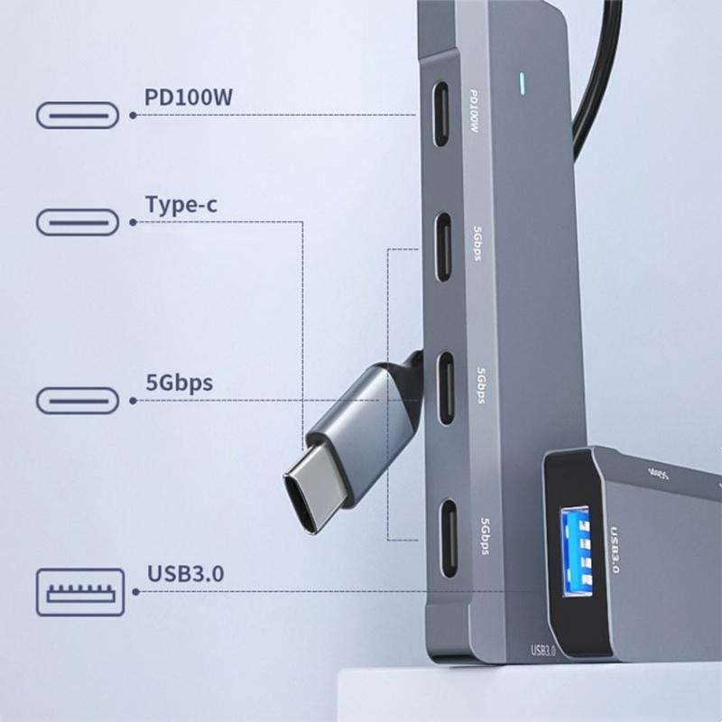 1. This is a hub converting to 3 x Type-C + 1 x USB + 1 x PD 100W ports