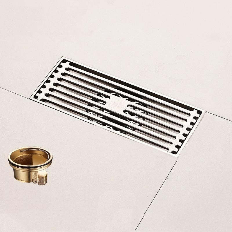 All Copper Brushed Anti-Odor Floor Drain Gravity Copper Core Bathroom Floor Drain, Specification: 8x20cm Long Medium Drain