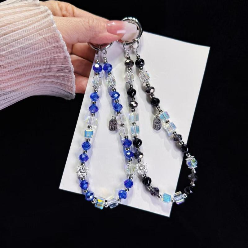 Alloy Zhaofu Crystal Beaded Phone Chain(Blue)