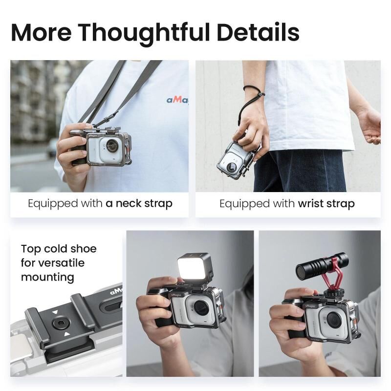 1. Universal Metal Handgrip Kit with detachable components. Install/remove the handgrip quickly by hand. Easily switch between street photography, cycling, and Vlogging. Freely combine accessories for instant creativity.