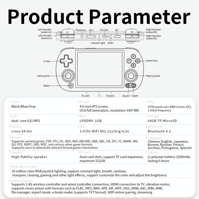 ANBERNIC RG40XXH WIFI Wireless Joystick Pocket Console HDMI Connection TV Online Sparring Game Console 256G(Blue) (ANBERNIC)