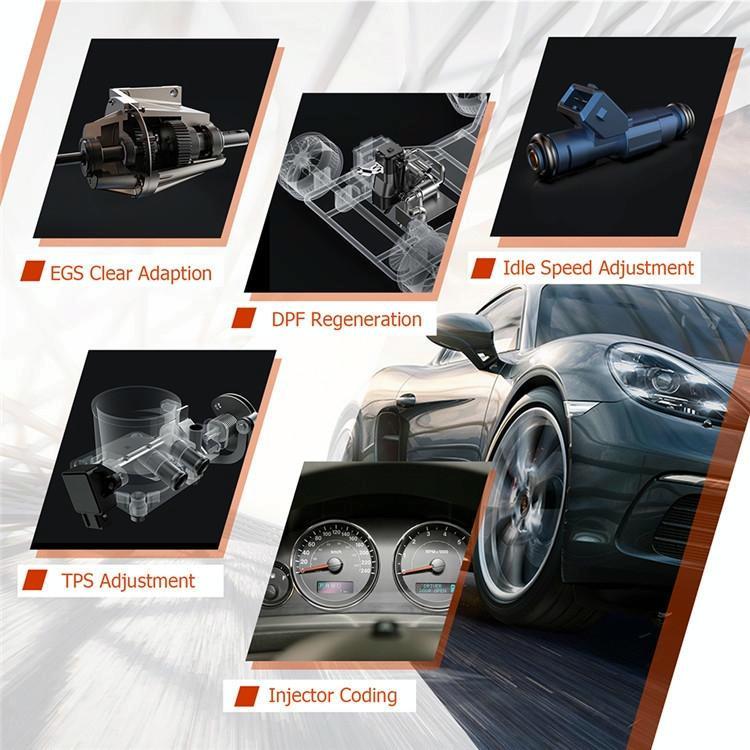9. Advanced functions: CBS reset/correction, EPB replacement, SAS learning, DPF regeneration, EGS clear adaptation, battery registration, fuel pump reset (F chassis only), TPS adjustment, DME/DDE engine special functions, injector coding (IQA), idle adjustment, ECU reset (ACMS/RDC reset), etc.