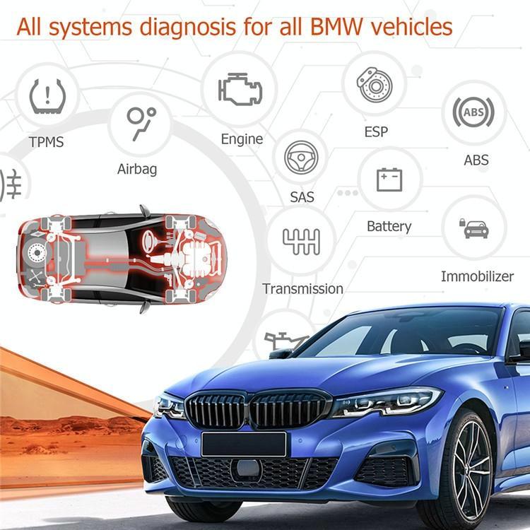 1. This professional scanner for BMW/Mini can read the fault code memory of your vehicles ECU (such as engine, transmission, ABS, TPMS, SRS, air conditioning, anti-theft system, etc.) and gain in-depth understanding of your vehicles condition, and supports body, chassis, drive and all control module inspections. All error codes can be deleted after diagnosis. This helps you detect errors before damaging your vehicle.