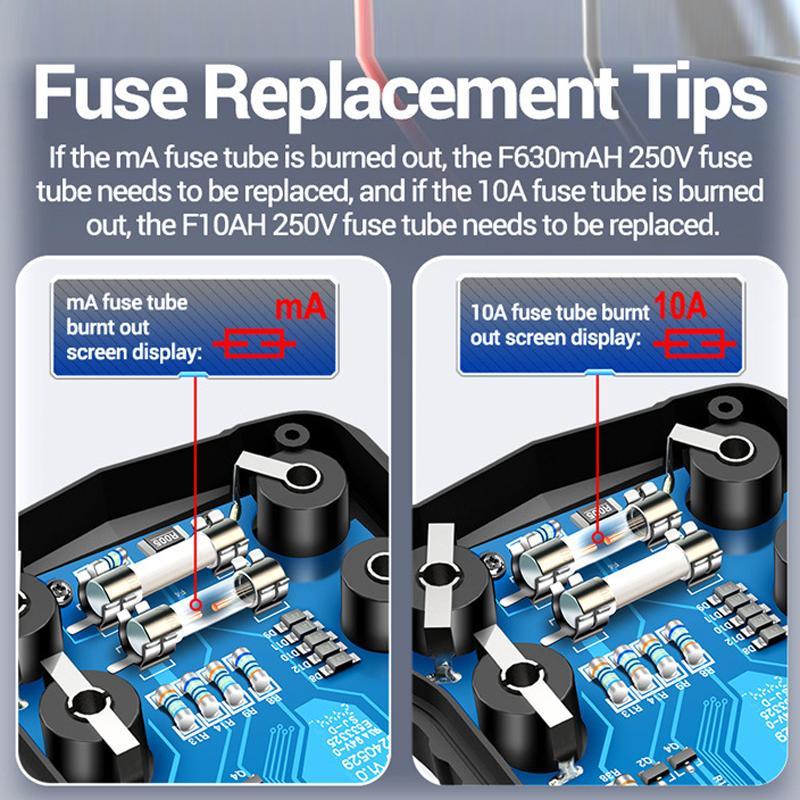 16. Built-in double fuse, multi-directional anti-burn protection, automatic identification to avoid misoperation to achieve anti-burn protection, and safer current measurement