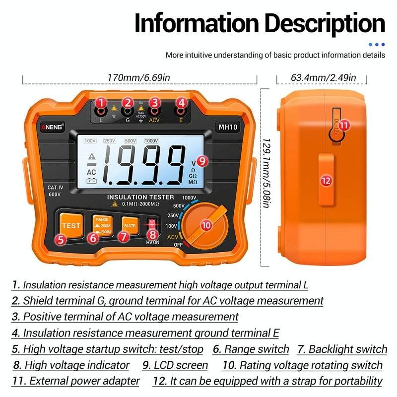 12. The measurement range of MH10 is 0.1-1999 milliohms, and the range can be changed manually
