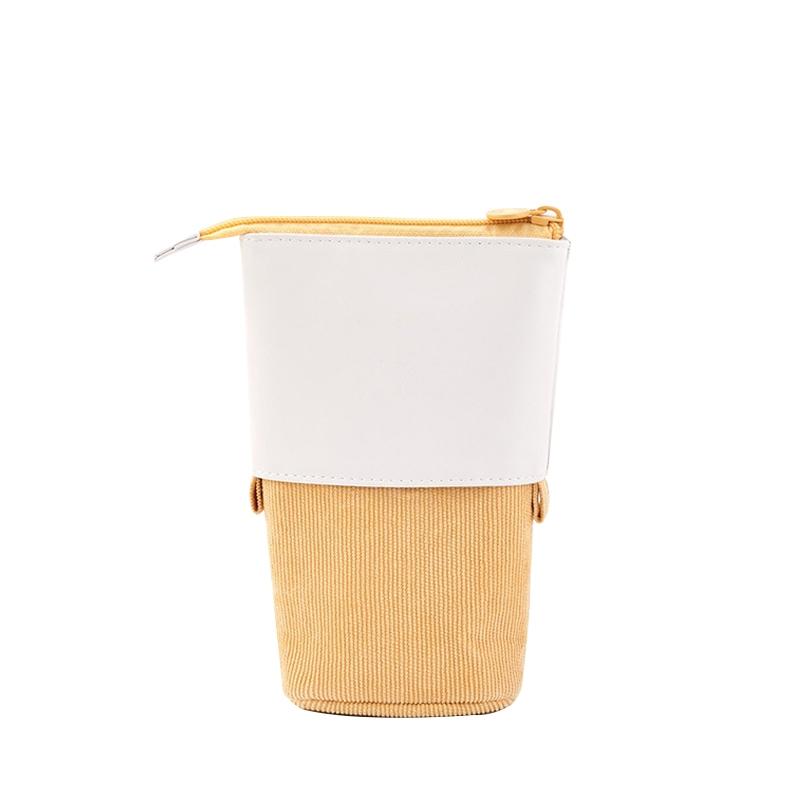 ANGOO Corduroy Retractable Drop-Down Pencil Case Student Stationery Storage Bag(Turmeric) (ANGOO)