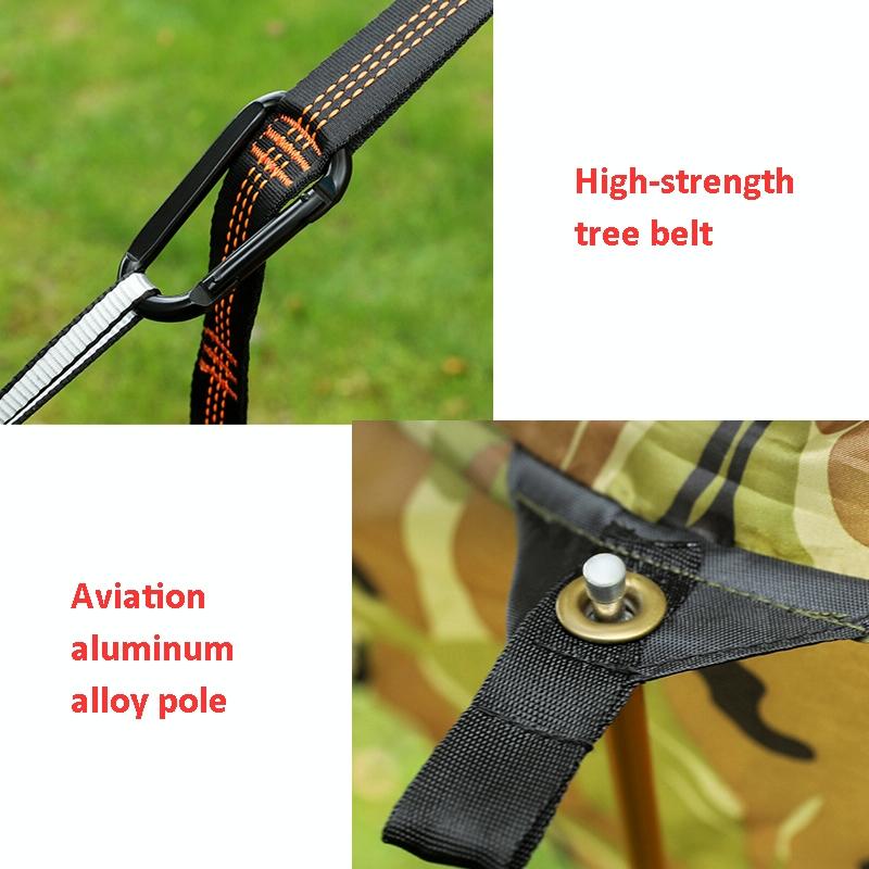 8. Configuration: hammock x1, aluminum alloy rod x2, 3m 11-ring high-strength tree strap x2, black gold steel buckle x2, one-piece storage bag x1