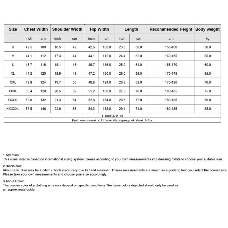 4. Size: S / M / L / XL / XXL / XXXL / XXXXL / XXXXXL