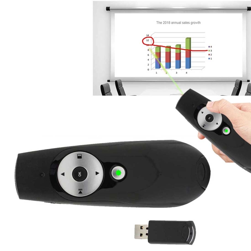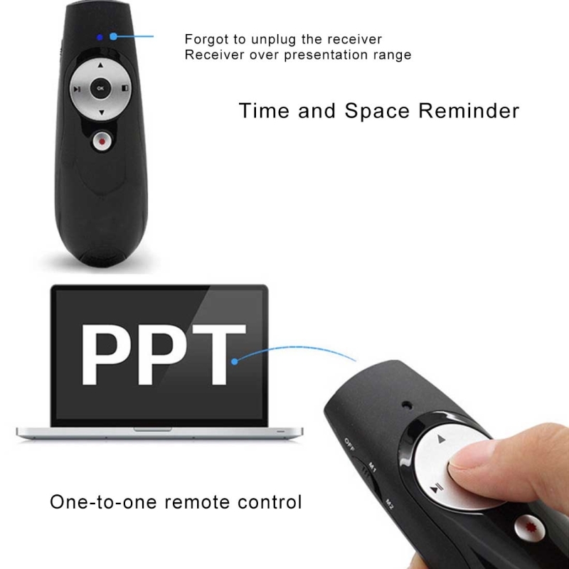 3. 360 degrees control presentation clicker features 2.4GHz universal RF frequency and remote range of up to 30m, laser distance up to 100 meters.