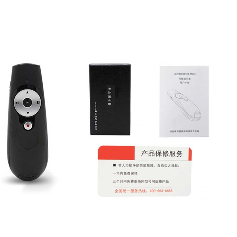 1. Presentation remote: designed with 2 x AAA batteries(not included), easy to replace and operate when its power off, it avoids electric leakage as well.