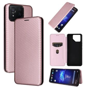 For ASUS ROG Phone 8 Carbon Fiber Texture Flip Leather Phone Case(Pink)