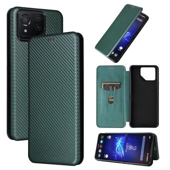 For ASUS ROG Phone 8 Carbon Fiber Texture Flip Leather Phone Case(Green)