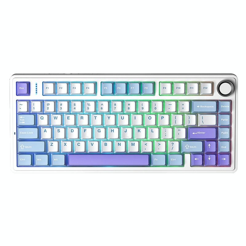 AULA F75 80 Keys Wired/2.4G/Bluetooth Three Model Customized RGB Mechanical Keyboard(White Blue Purple) (AULA)