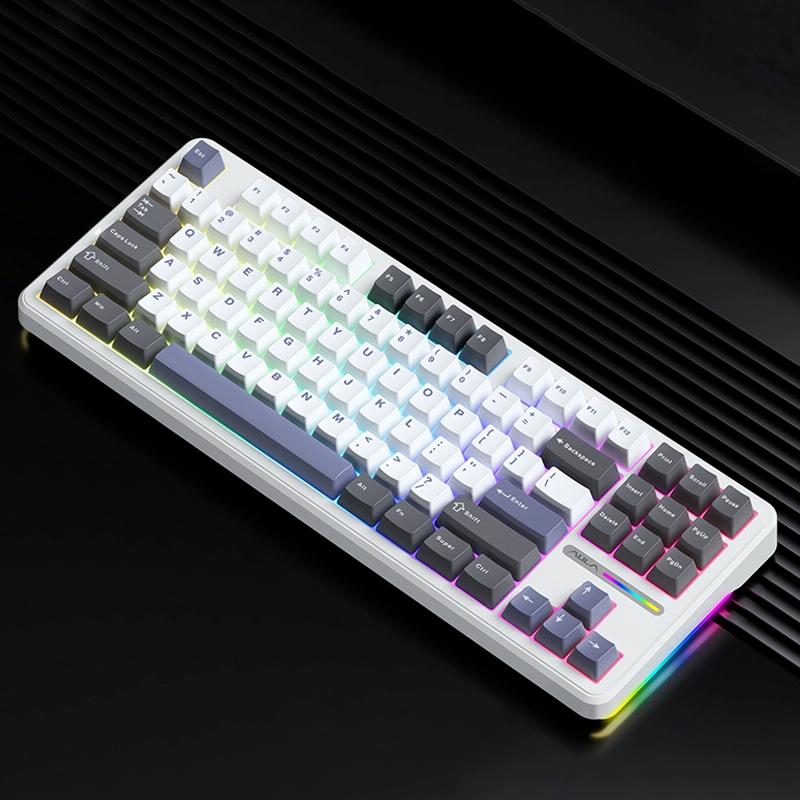 AULA F87 87 Keys Wired/2.4G/Bluetooth Three Model Customized RGB Mechanical Keyboard(White Grey Blue) (AULA)
