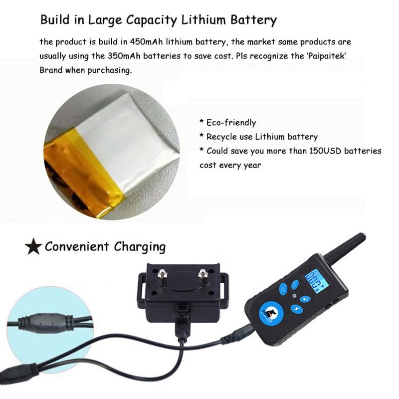 1. Function: vibration + electric shock + sound (remote control + automatic barking)