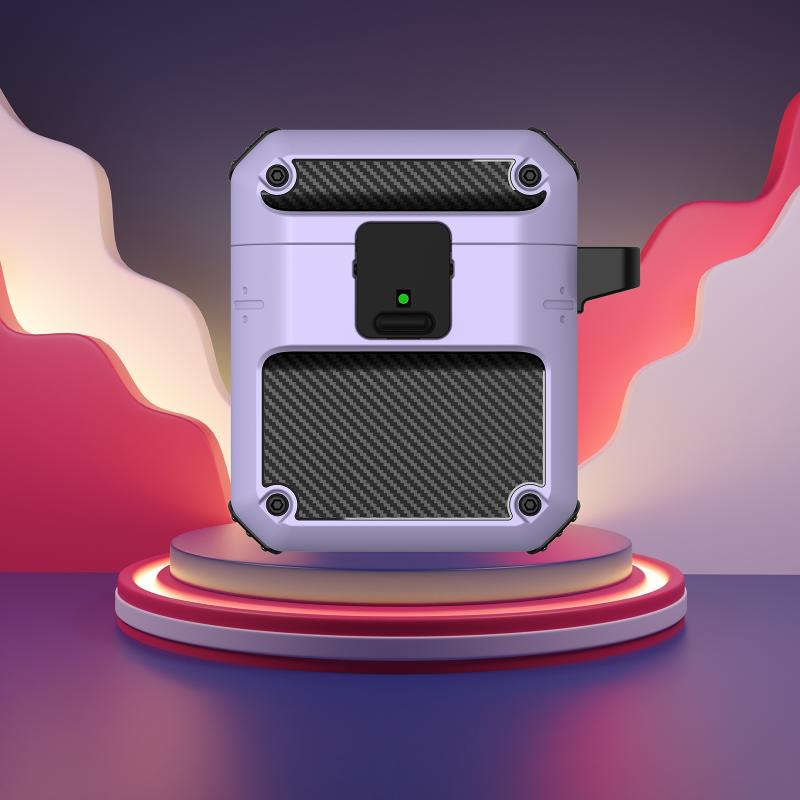 Automatic Bomb TPU + PC Earphone Protective Case with Switch For AirPods 2 / 1(Black Purple)