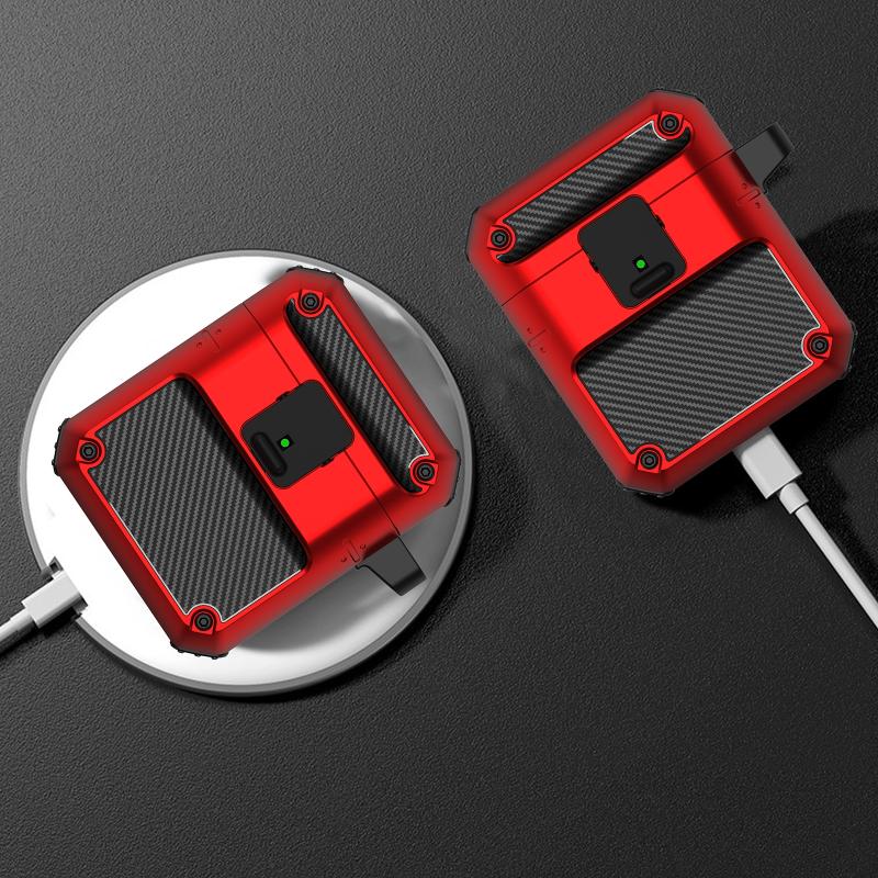 Automatic Bomb TPU + PC Earphone Protective Case with Switch For AirPods 2 / 1(Black Red)