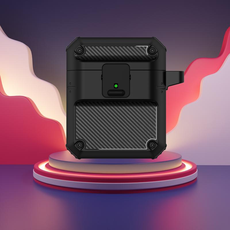 Automatic Bomb TPU + PC Earphone Protective Case with Switch For AirPods 2 / 1(Black)