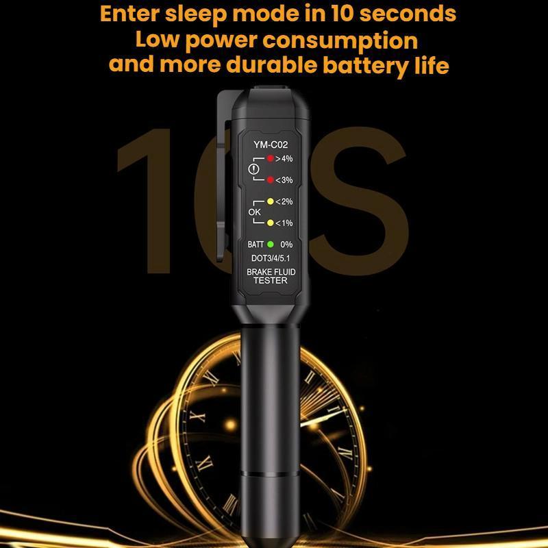 3. After completing the inspection, all indicator lights will turn off after 10 seconds. The detection pen enters power-saving mode. A battery can last for a long time and consumes almost no power. It is recommended to keep this device in the vehicle to keep abreast of the quality of the brake oil, which is easy and quick to operate.