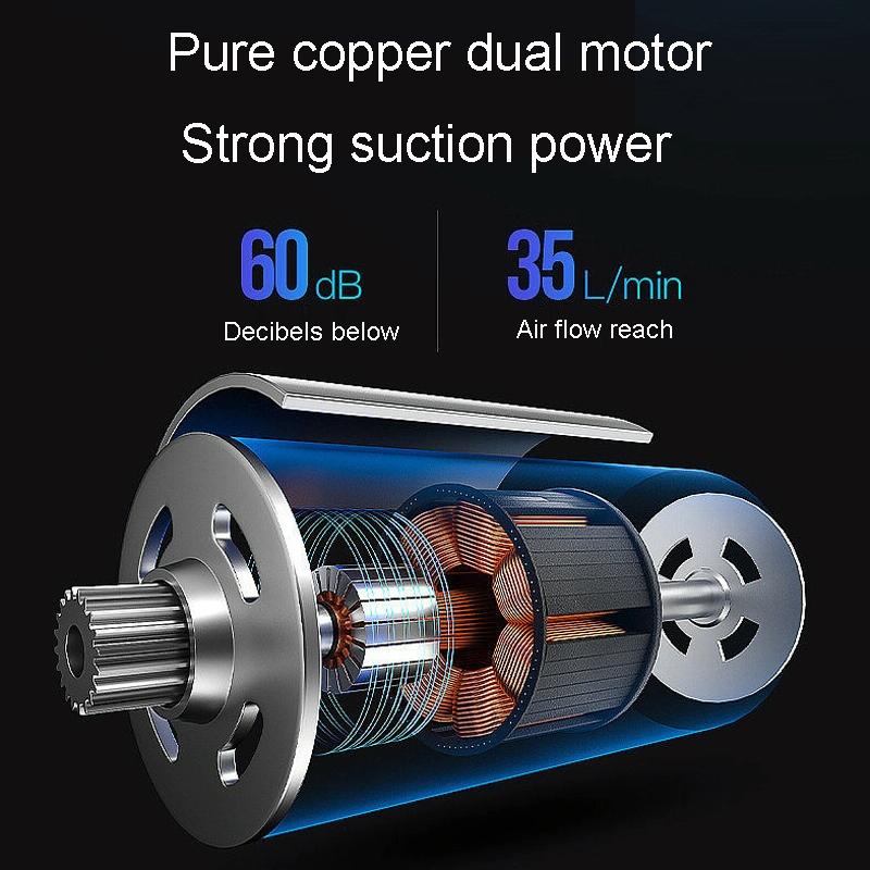 9. Pure copper dual motors, strong suction, easy to deal with all kinds of garbage, wet and dry water, dust, gravel, regardless of the type, a net to eliminate