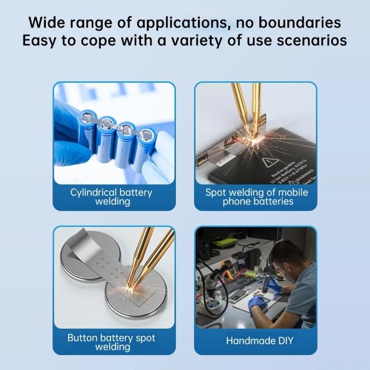 6. Powerful dual pulse, welding thickness up to 0.35mm, support welding 0.35mm nickel-plated, 0.2mm steel, iron, 0.15mm pure nickel